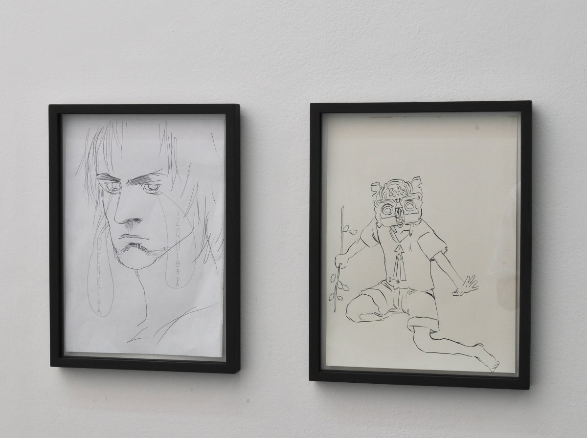 Cerca de la entrada se encontraba colgado el dibujo Sin título (Dios ha vuelto, irreconocible), vinculado a la facultad de discernimiento, el límite entre lo legible y lo ilegible, y entre la forma y el contenido.